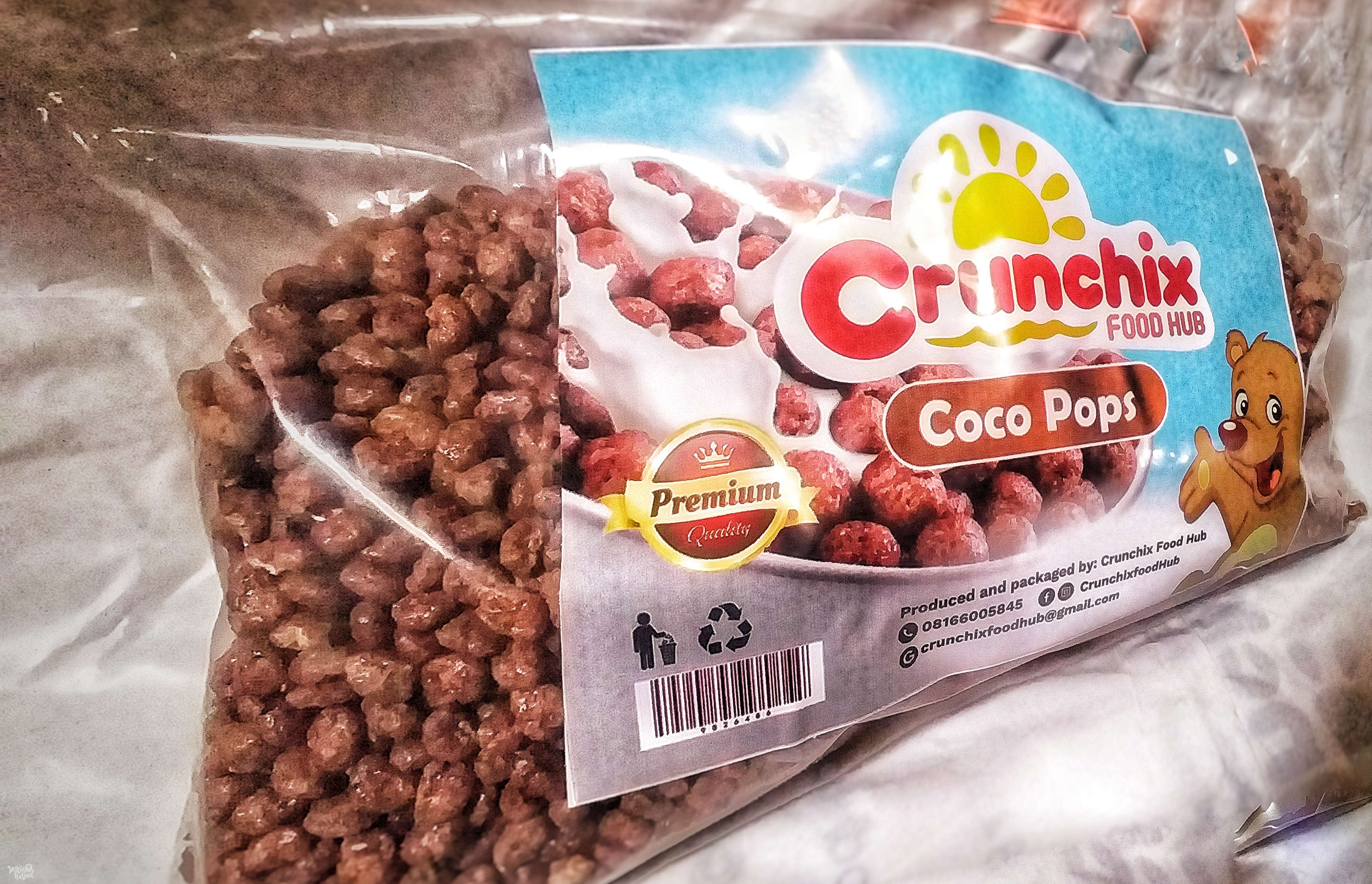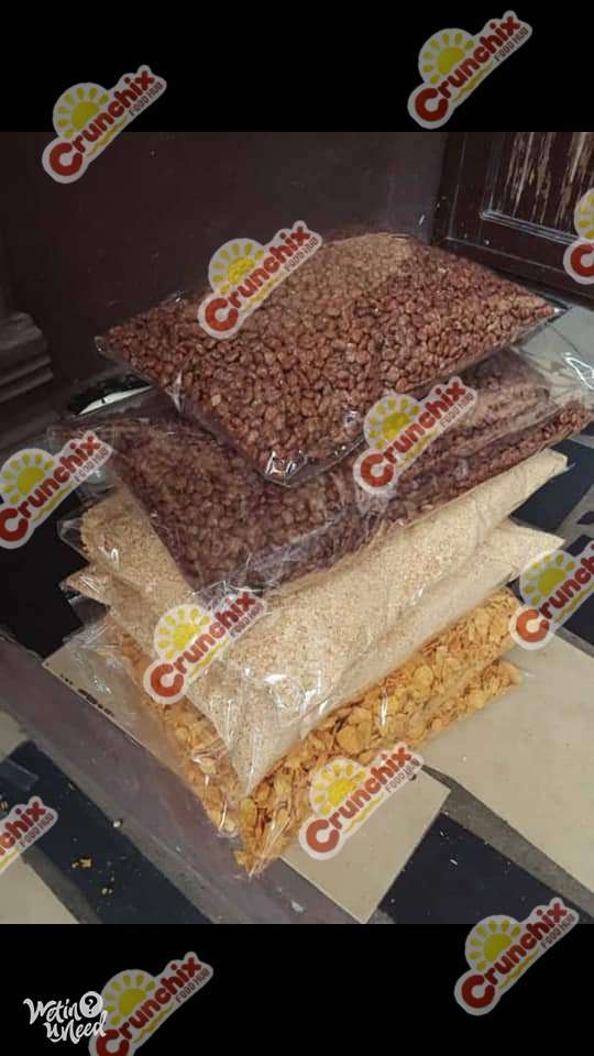 We sell cereal, beverages and other food items in bags , half and quarter. We also sell in bucket sizes and half. Our products include, Cornflakes, Cocopops, Milo Crunchy, Oats, Custard, Golden morn, Milk, Milo, Cocoa/Chocolate Powder, Nescafe coffee, Semolima, Oatflour, Macaroni, Spaghetti etc