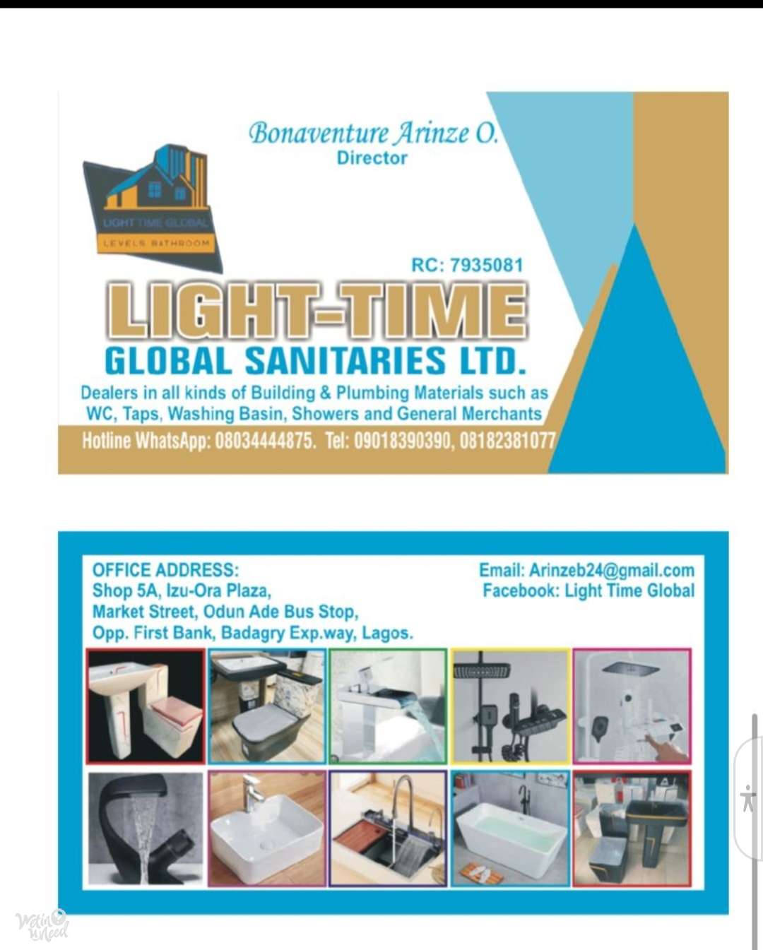 Light-Time Global Sanitaries Ltd. is a trusted name in the supply of premium building and plumbing materials. We specialize in a wide range of high-quality sanitary wares, including WC sets, taps, washing basins, showers, and more. As general merchants, we are committed to providing durable, stylish, and functional products that meet the needs of modern homes and commercial spaces. With a dedication to excellence and customer satisfaction, Light-Time Global ensures you get only the best.