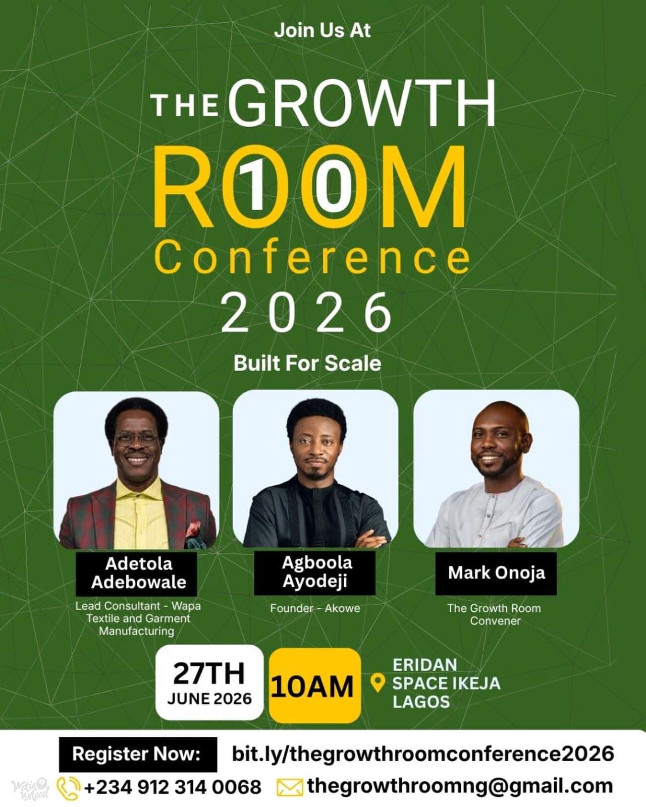 - Mark Onoja (Convener of The Growth Room).