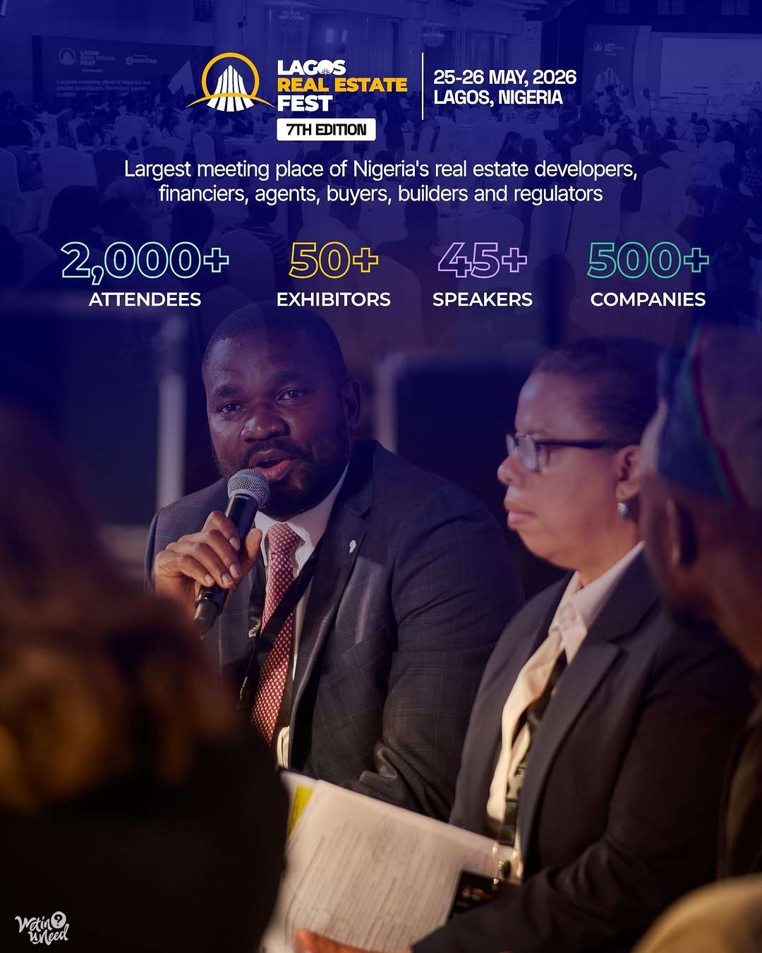 The event is happening on 25-26 May 2026 Day 1: Nigeria's Real Estate Leadership Roundtable - 25th May, 2026 - Fourpoints By Sheraton, VI, Lagos. (Blue and Purple Pass only) Day 2: Main Event -26th May, 2026 - The Oriental Hotel, Victoria Island, Lagos, Nigeria All Pass Tickets: Infos, Reg, and tickets are available via the official Lagos Real Estate Fest Tix Africa page. (https://tix.africa/discover/lagos-real-estate-fest-2026). Early bird tickets have previously been offered at a 50% discount.