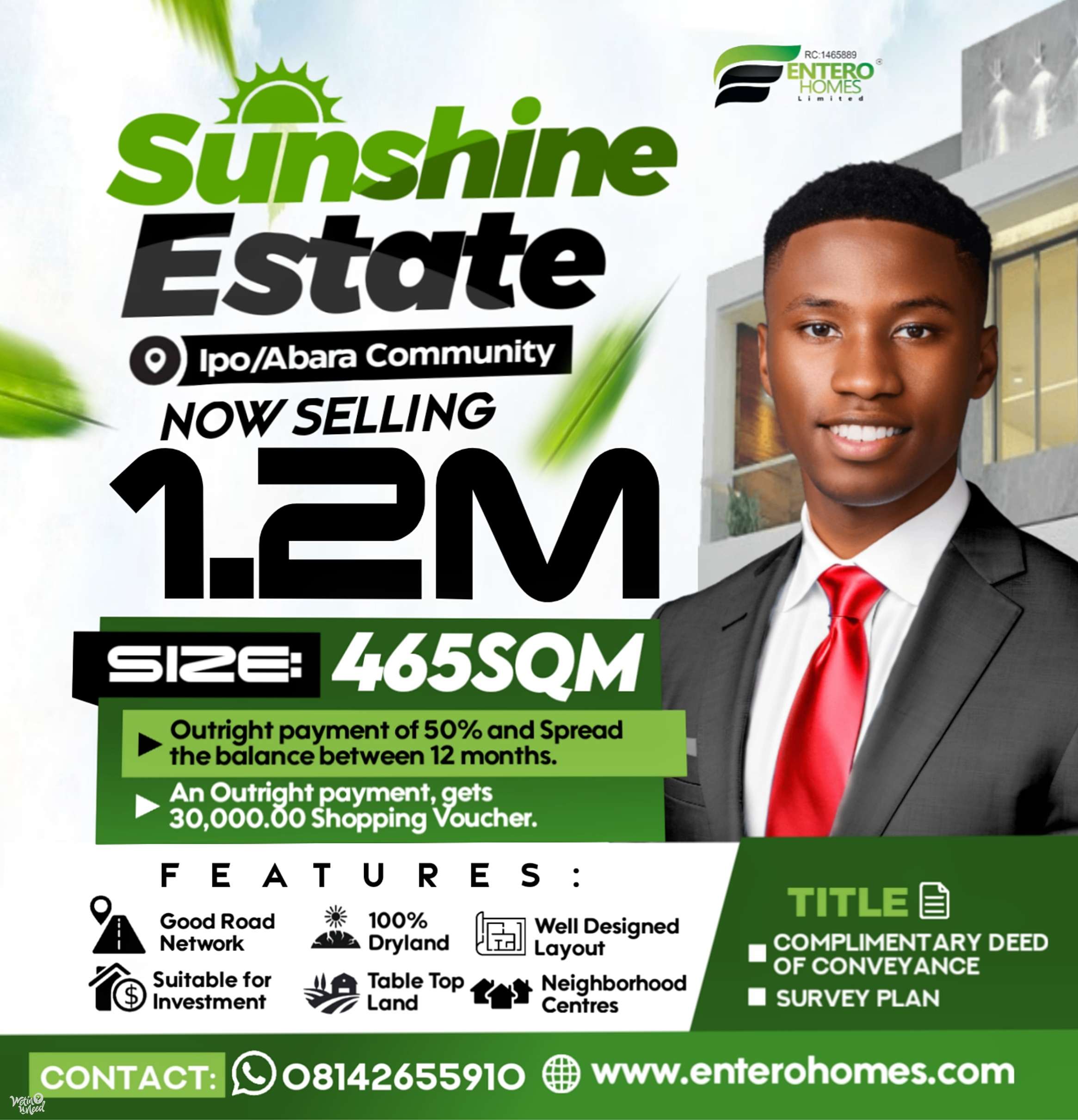 Discover your dream property at SUNSHINE ESTATE! ???? Prime plots in Rivers State's vibrant IPO-ABARA community, starting at ?1.2m. With great road access, dry land, and proximity to key landmarks, it's perfect for investment or building your dream home. Plus, get a ?30k shopping voucher on outright payment! Contact 08142655910 for details via call or WhatsApp. ????