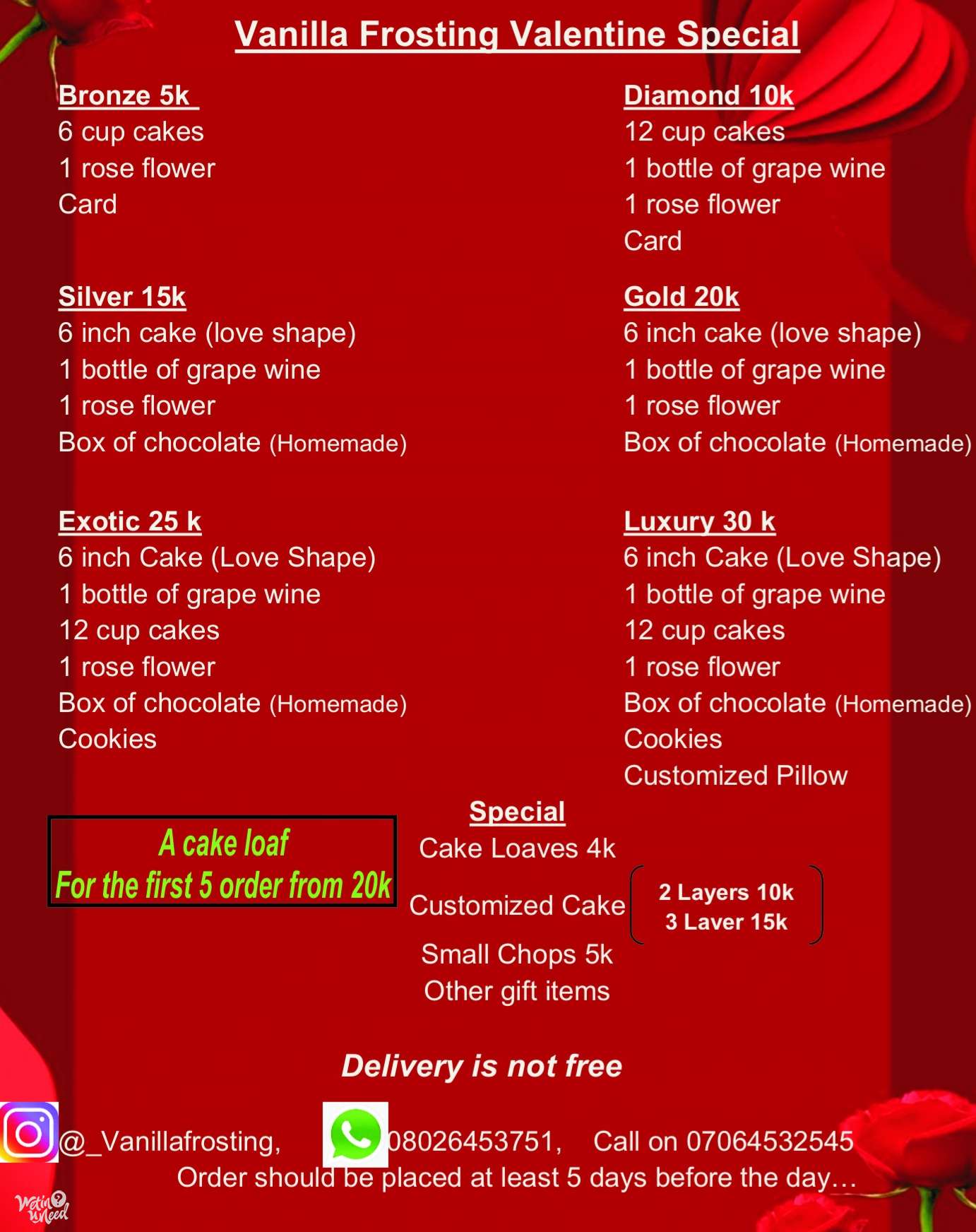 Size 8 inch 4 layers Flavors: chocolate/ red velvet Frosting: butter cream