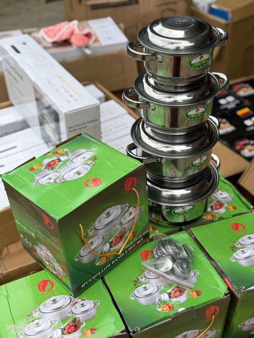 5 PCS ALUMINIUM STOCK POT WITH STEAMER SIZES: 7.9L 5.2L 3.3L 1.9 PRICE: 31500