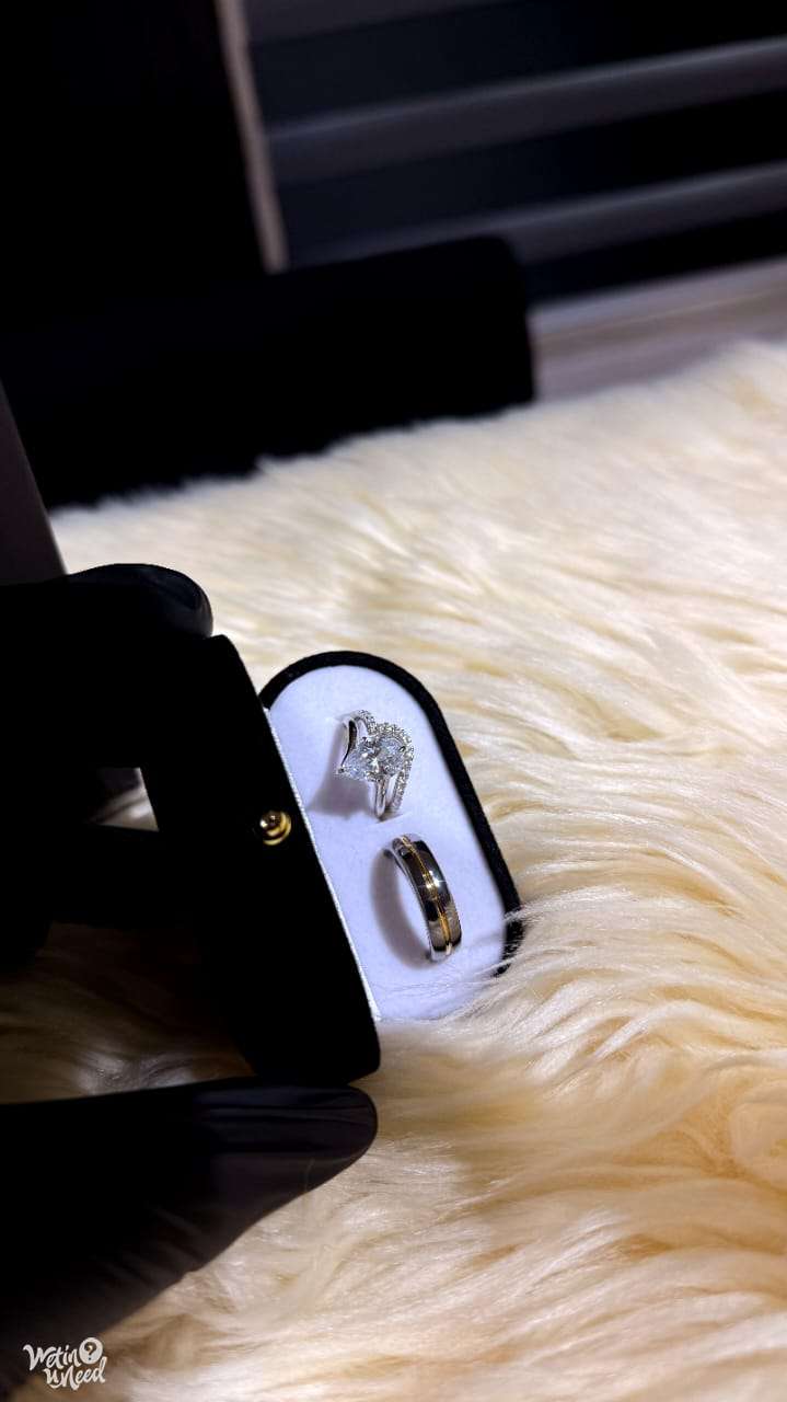Strong, sleek, and built to last. A durable tungsten band paired with a stunning teardrop ring—perfect for a lifetime commitment.