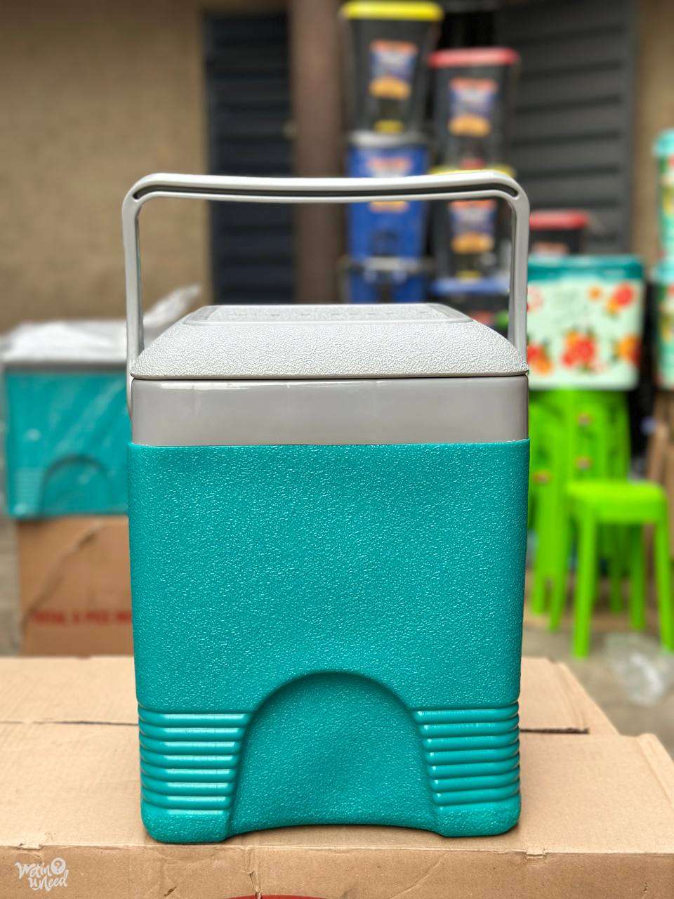 Multi-purpose cooler for drinks, food, and ice. Ideal for picnics, outings, and outdoor fun—keeps items fresh and chilled.