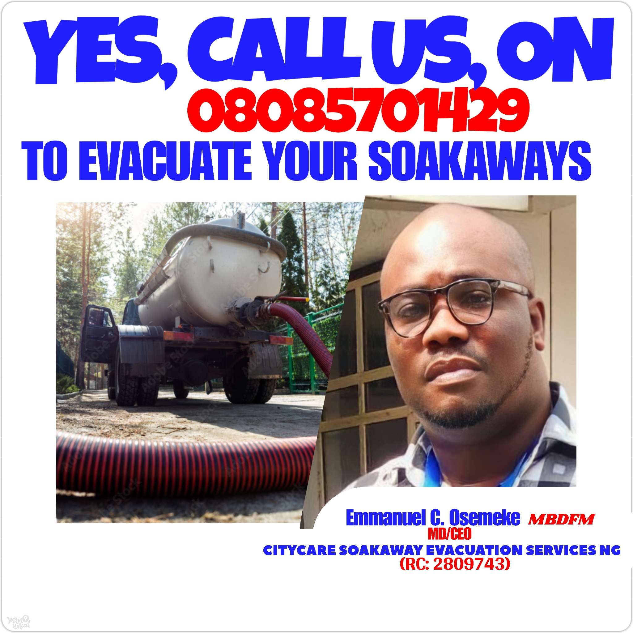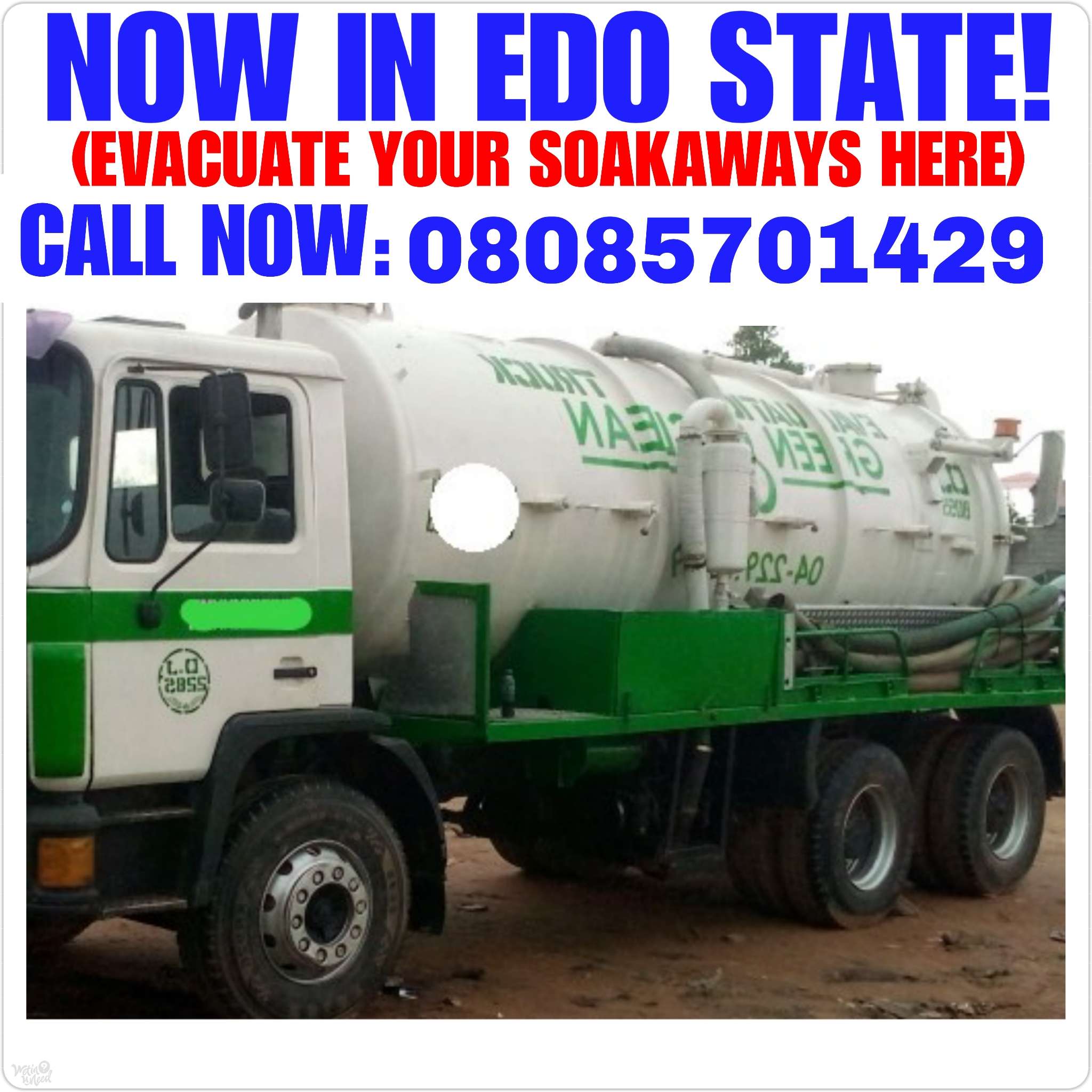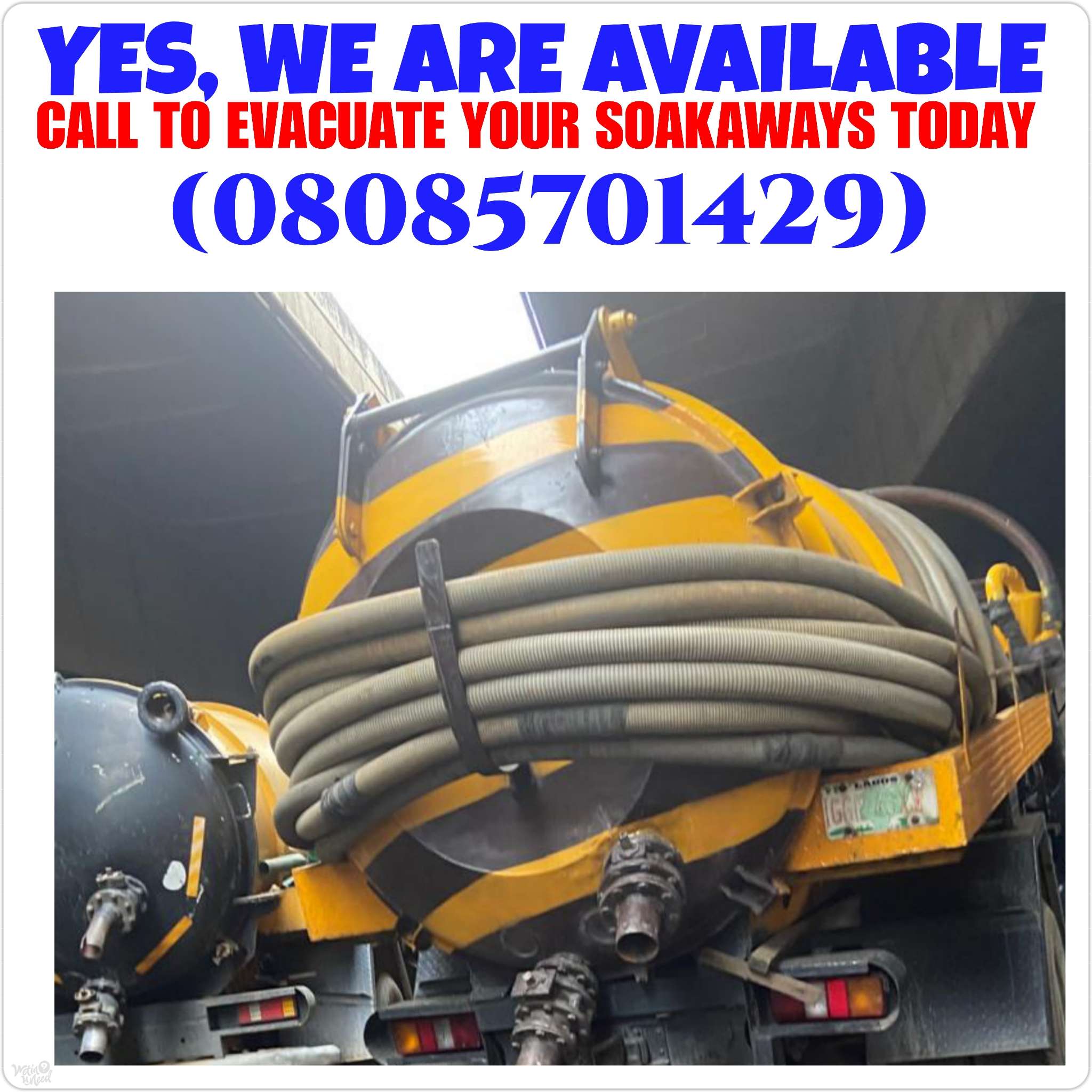 NOW MADE SIMPLE! You Can Now Call Us At Anytime Today, On: (08085701429) To Have Your Soakaways, Septic Tanks, and Sewages Evacuated Thoroughly...