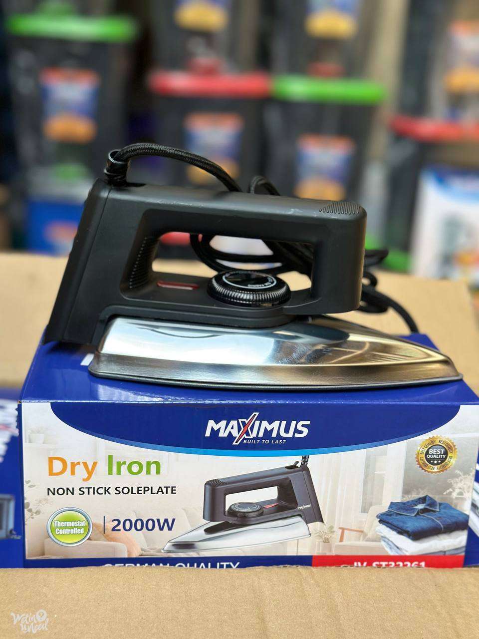 Durable dry iron with a non-stick soleplate designed for smooth ironing performance and efficient removal of wrinkles from various fabric types.