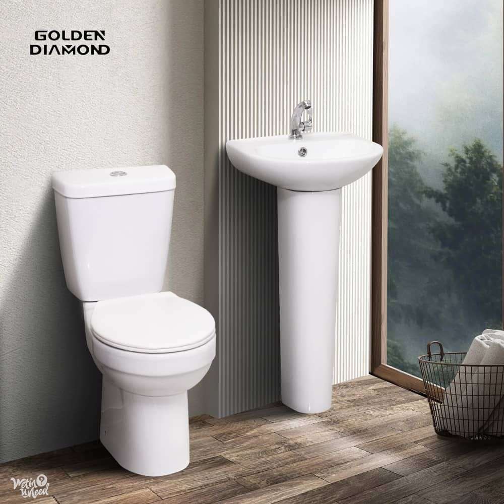 nhance your bathroom with this sleek, contemporary toilet and pedestal basin set. Designed with smooth curves and a polished ceramic finish for...