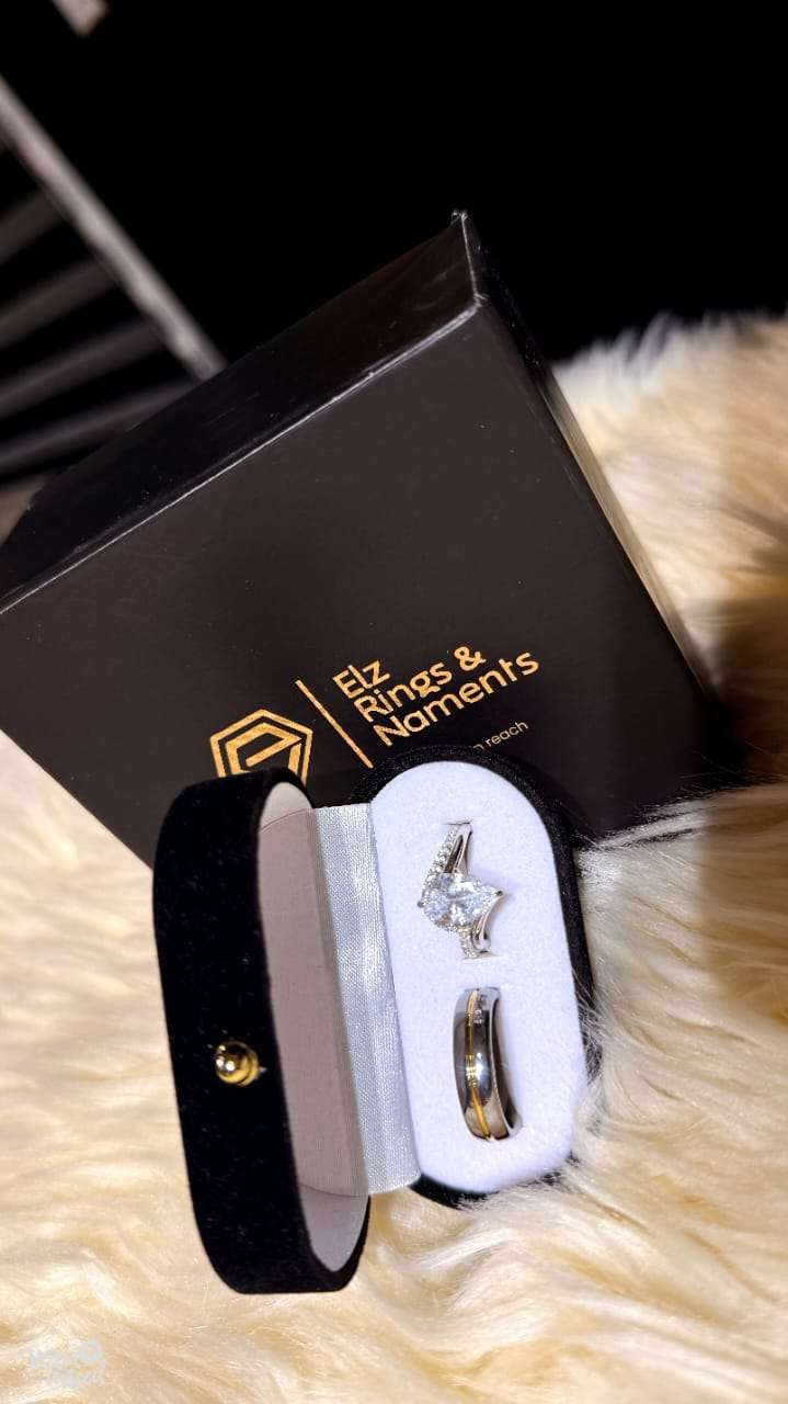 Strong, sleek, and built to last. A durable tungsten band paired with a stunning teardrop ring—perfect for a lifetime commitment.